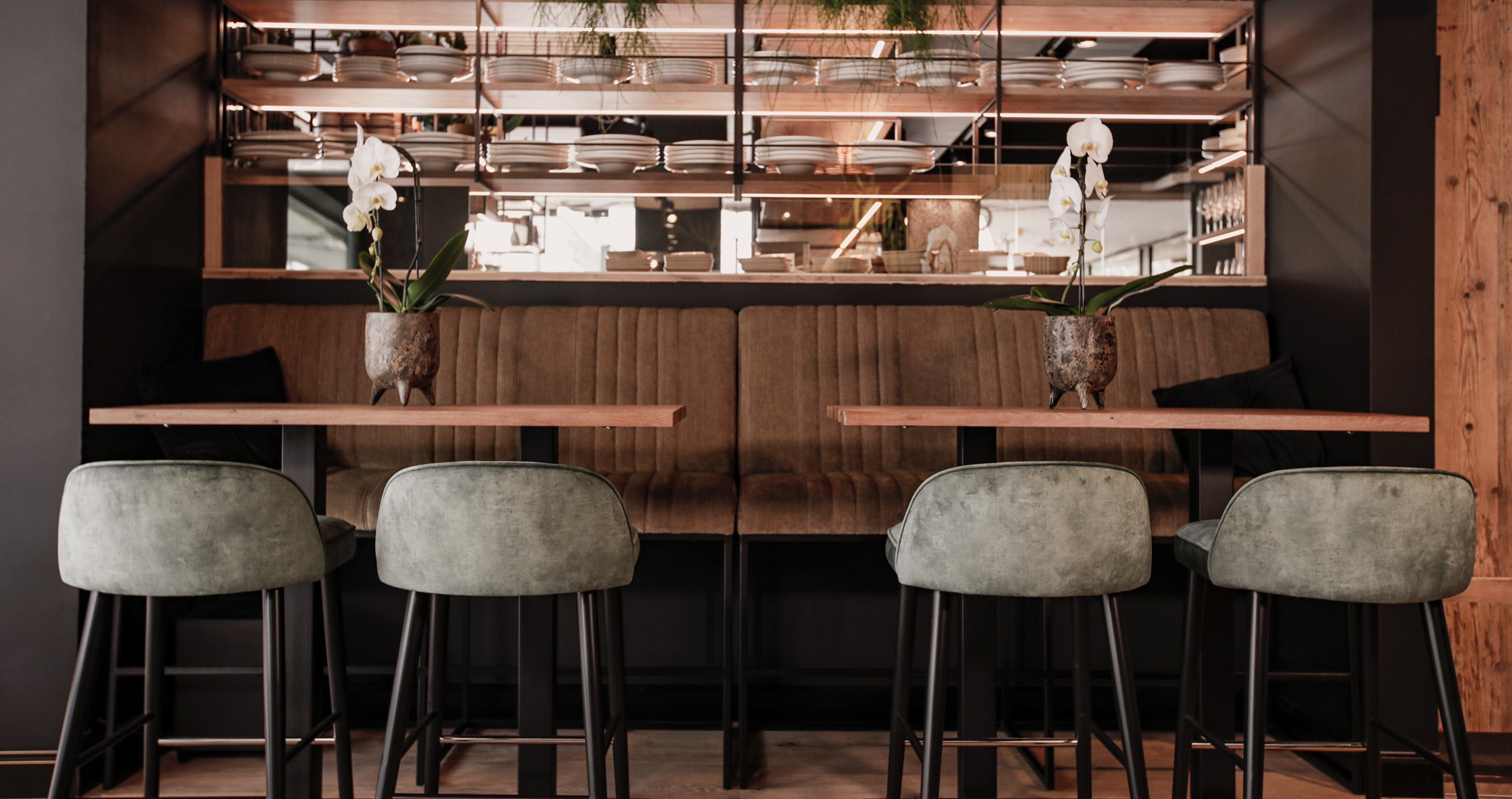 Wenn man das prägende Merkmal dieses Innenraumprojekts bestimmen müsste, wäre es Eleganz: Von den ausgewählten Materialien bis hin zum Möbeldesign spiegelt jedes Detail das Konzept eines raffinierten Lokals wider, das die Gäste herzlich willkommen heißt.