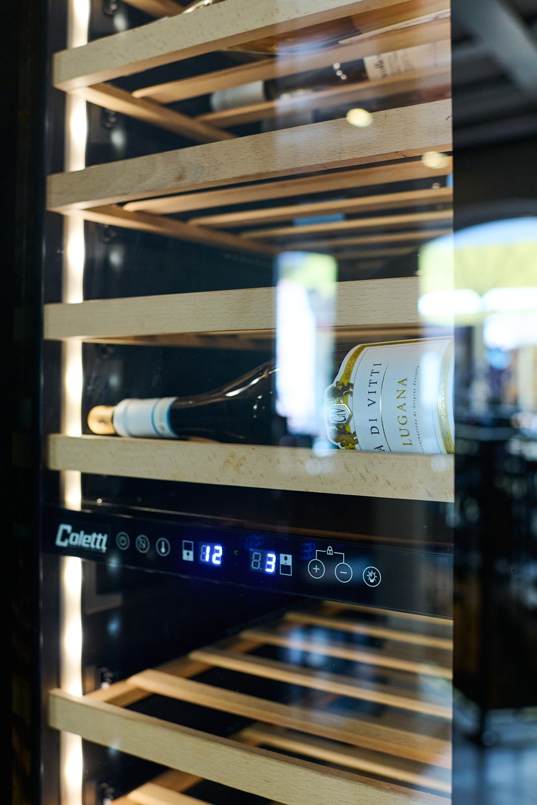 Wir haben uns um das Restyling des Restaurants gekümmert, insbesondere um die maßgefertigte Bartheke und die Weinvitrinen, die wir entworfen und ausgewählt haben, um sie harmonisch in die bestehende Einrichtung einzufügen und die authentische Atmosphäre des Lokals zu unterstreichen.