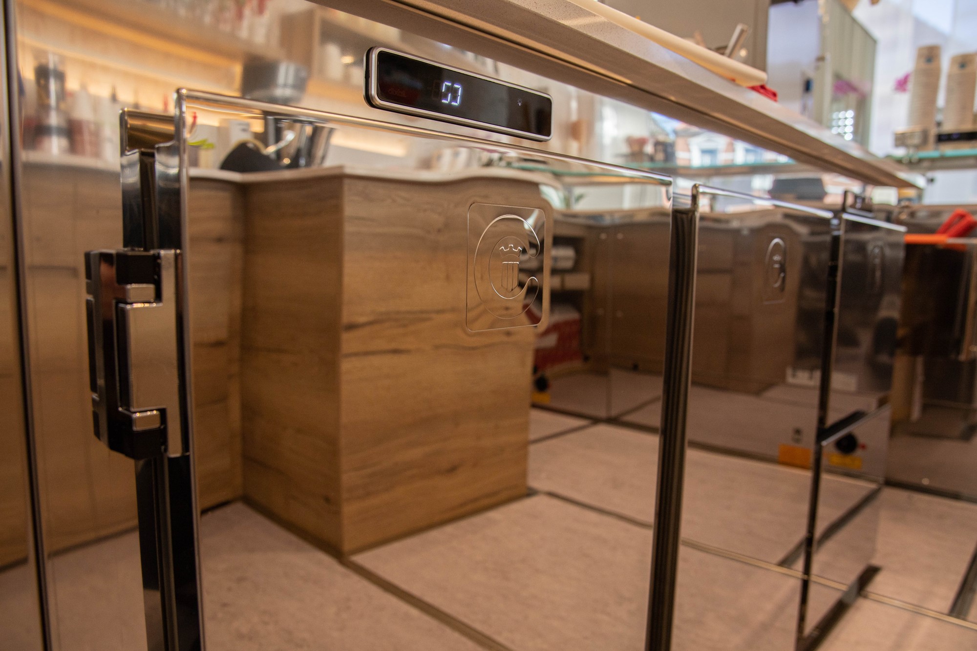 The white ice-cream counter highlights the product display and conveys a sense of freshness and cleanliness.
