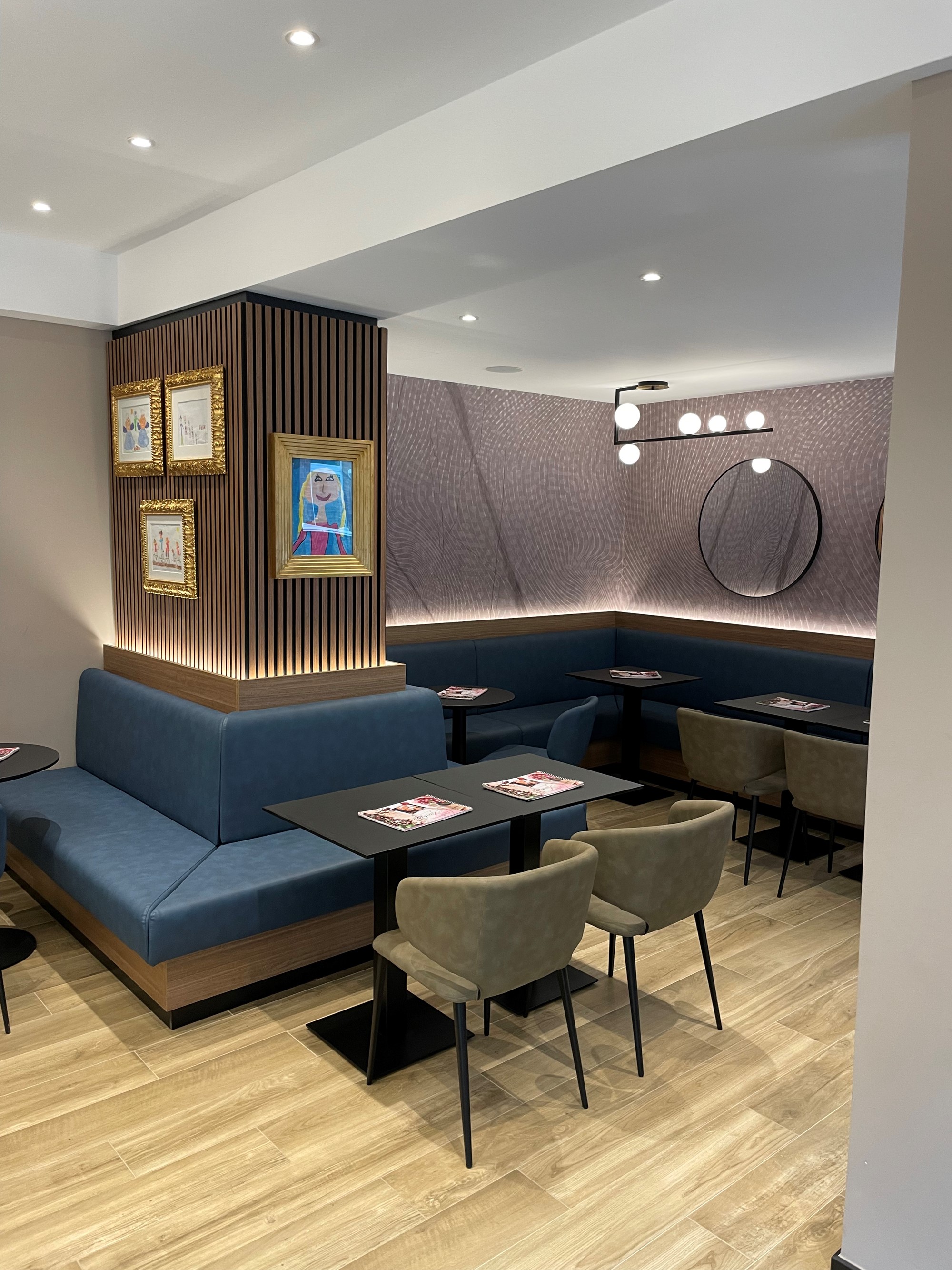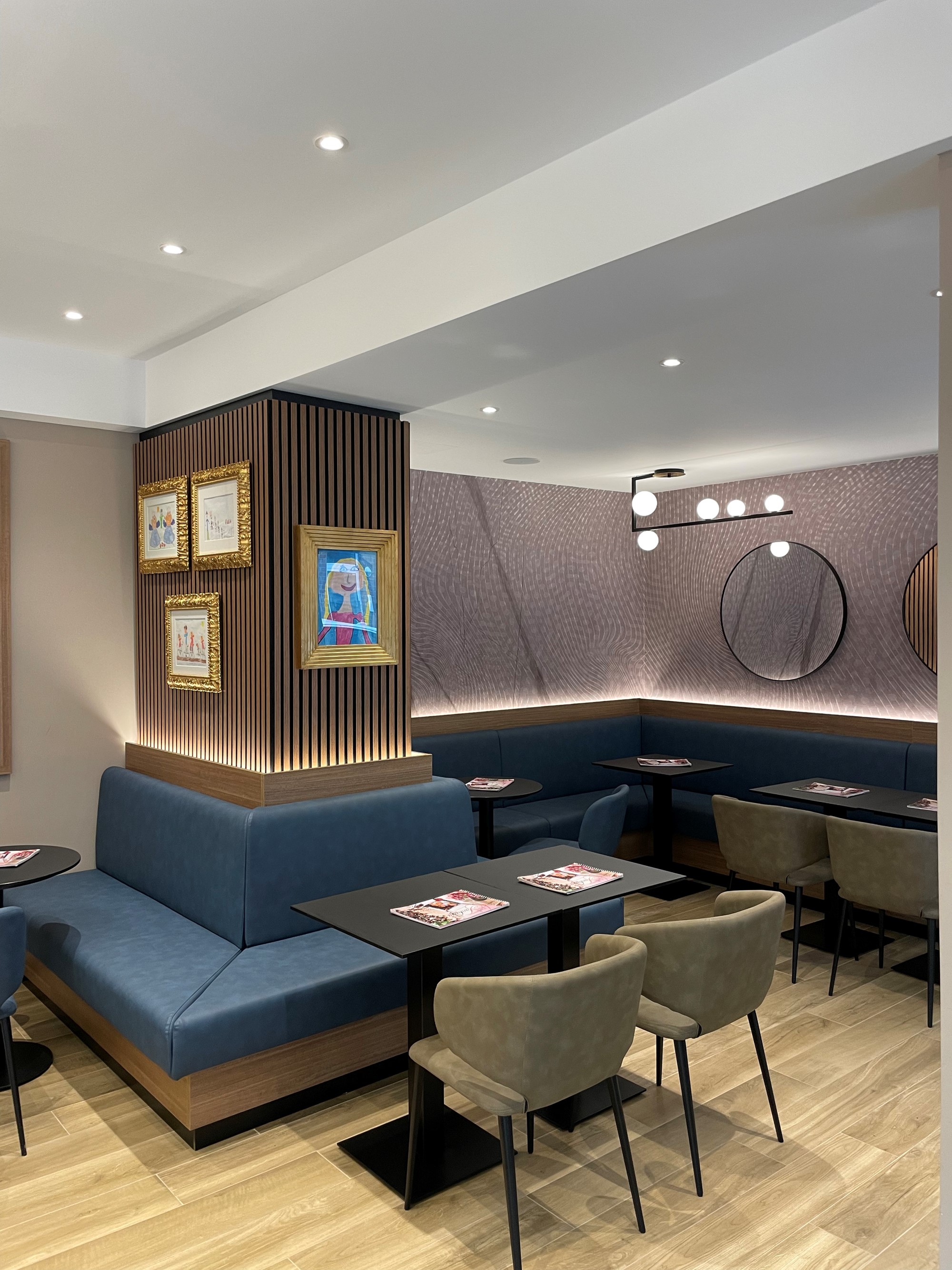 Thanks to a decisive restyling, we completely transformed the interiors for Eiscafe Fantasia, located in Hürth, in North-East Germany.