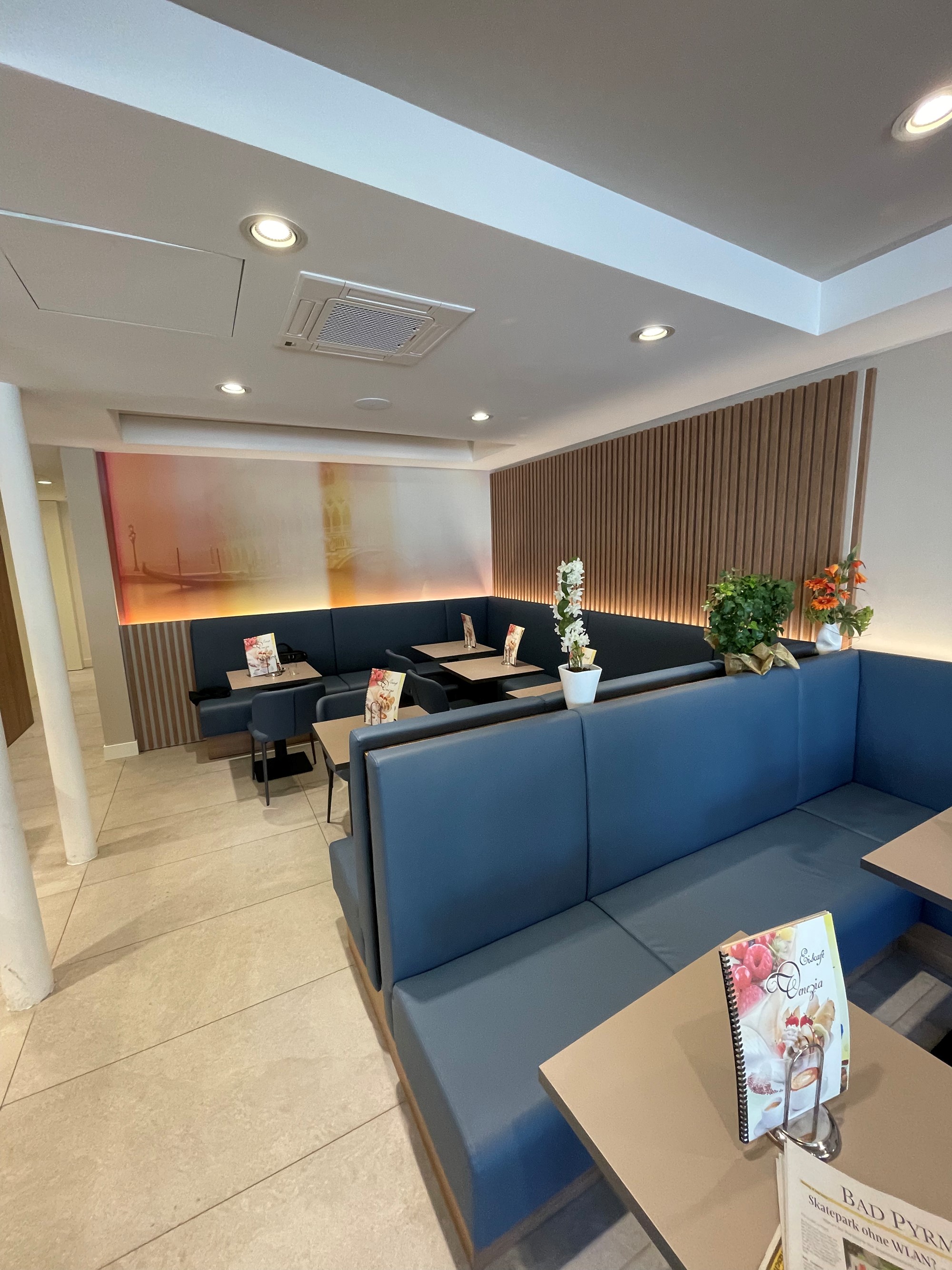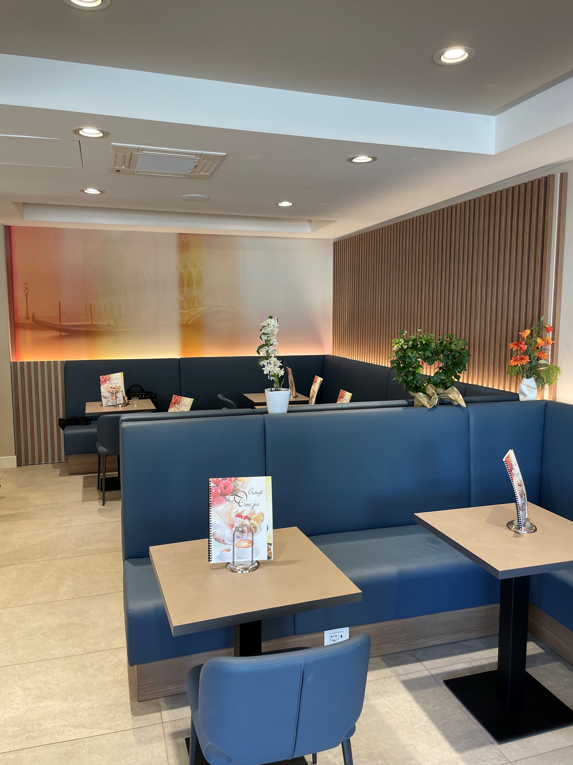 At Eis Café Venezia, every detail of the décor is designed to make customers feel the true atmosphere of the sea: colors, materials, and decorative elements come together to offer a unique, relaxing experience with a strong connection to Venetian tradition.