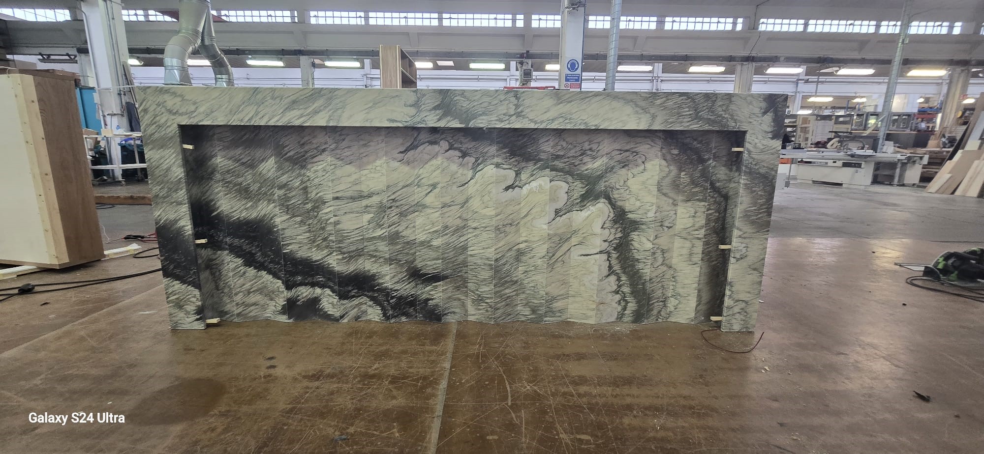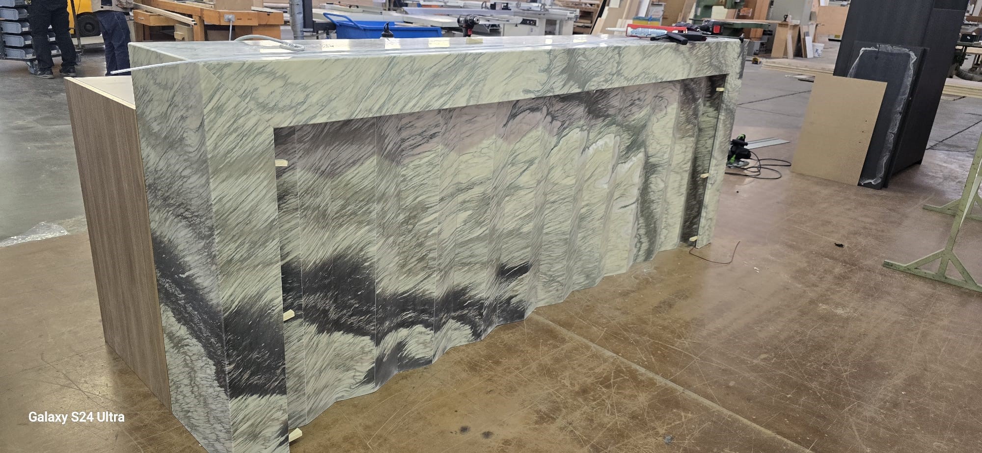What makes this project especially noteworthy is the complete evolution from “before” to “after”: from the work carried out in our workshop—where the counter took shape through cutting, finishing, and technical testing—to its final installation in the venue, where it achieved its full identity and character.